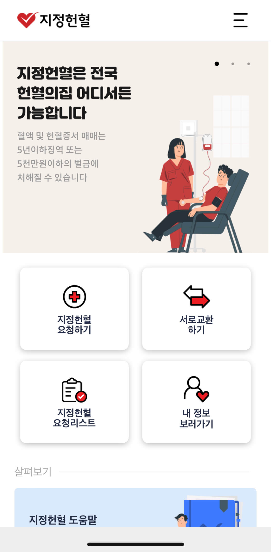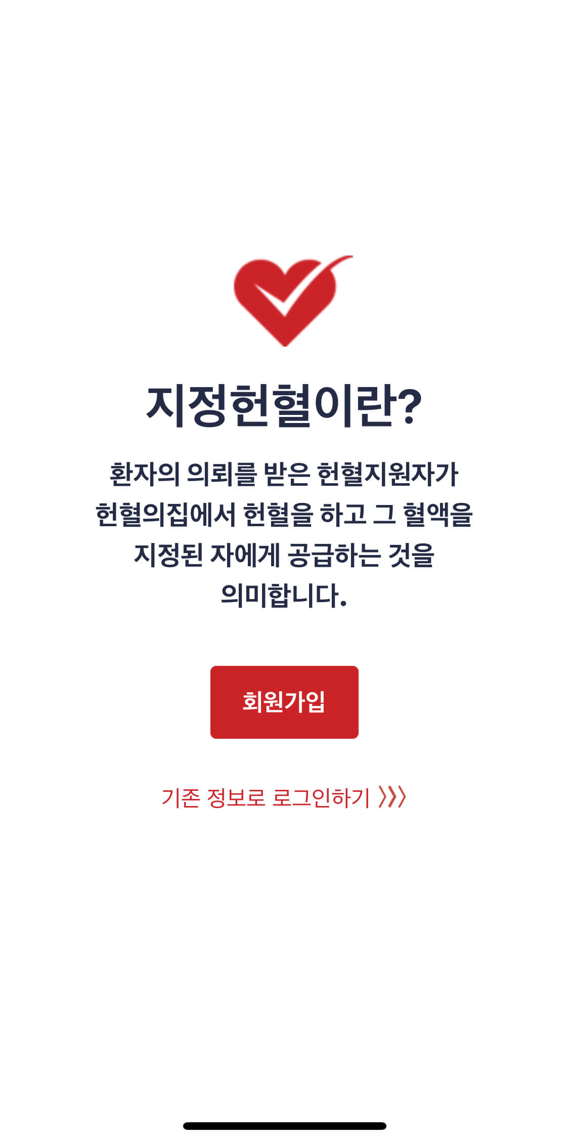 구글플레이나 앱스토에서 지정헌혈 검색 후 다운로드하면 확인되는 화면입니다.